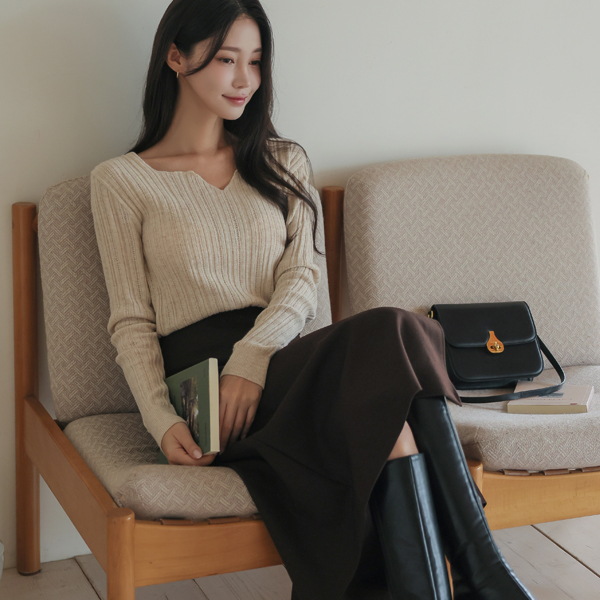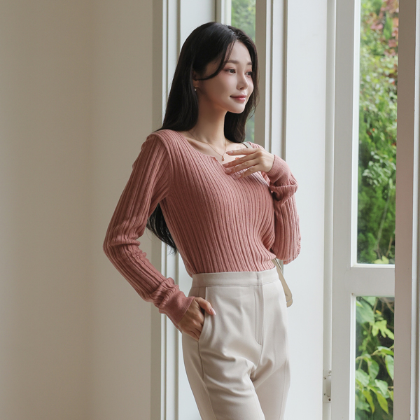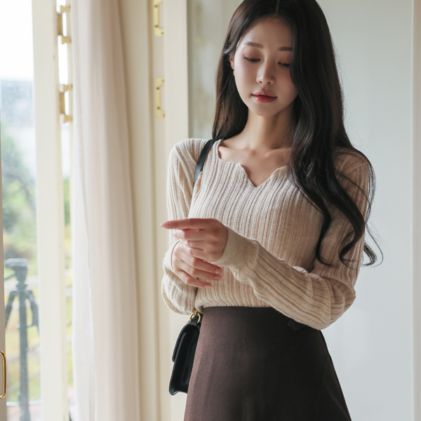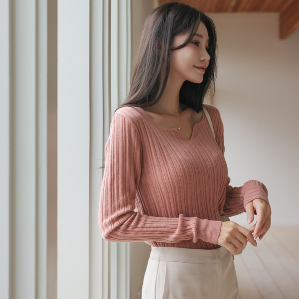 方形 v 开叉 羊毛 开士米 多色 条绒 针织t恤