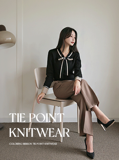 配色 蝴蝶结 领带 点缀 针织衫