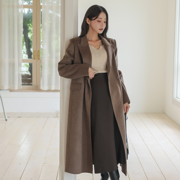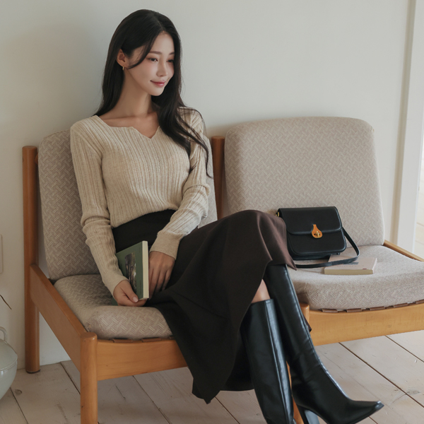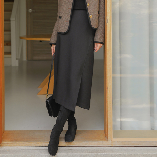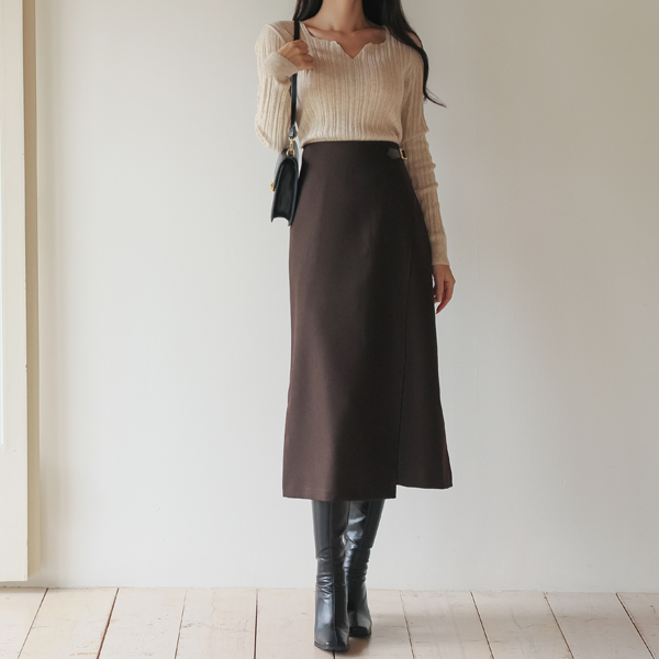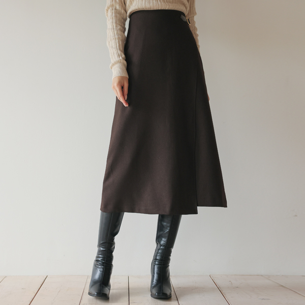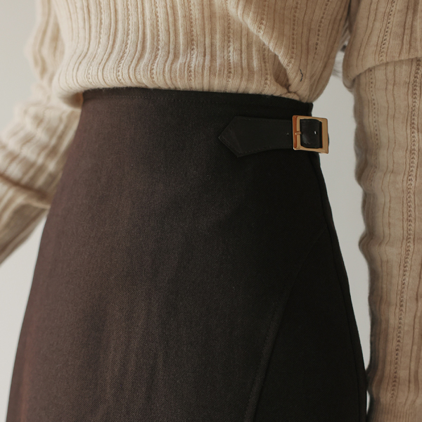 侧纽 人造皮夹 带扣 点缀 长款 裙子