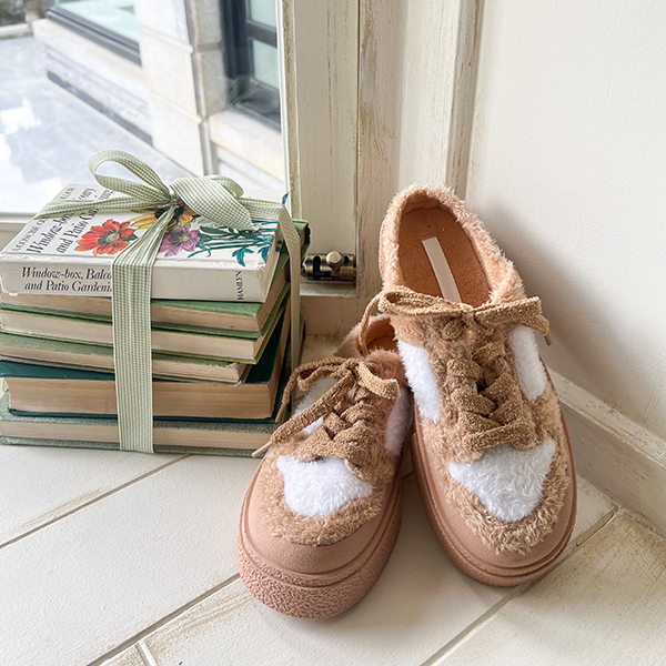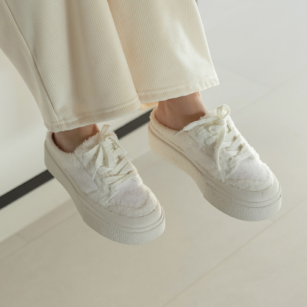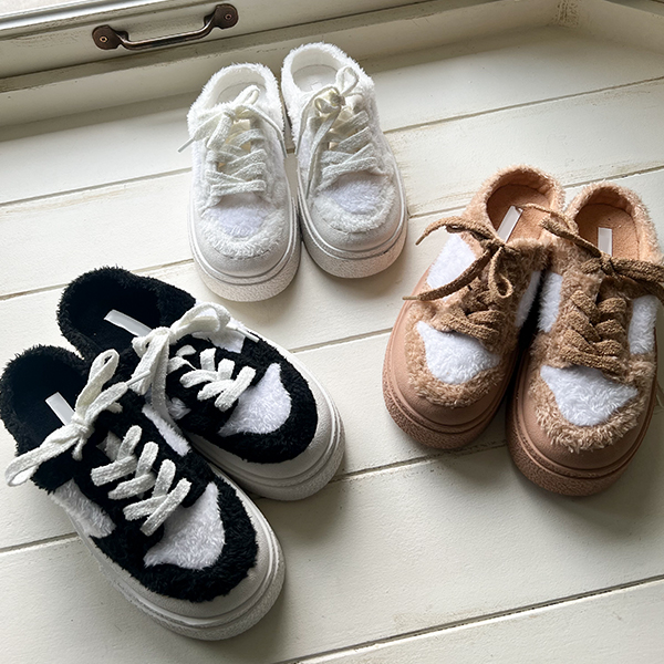 柔软的 毛皮草 厚底鞋 胶底帆布鞋 无后跟板鞋