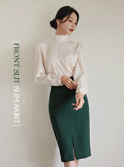 黄金 带扣 装饰 前面 开衩 斯利姆 裙子