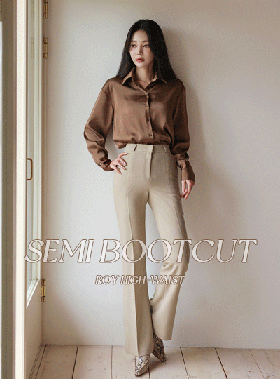 罗伊 高腰 斯利姆 休闲风格 喇叭 宽松长裤