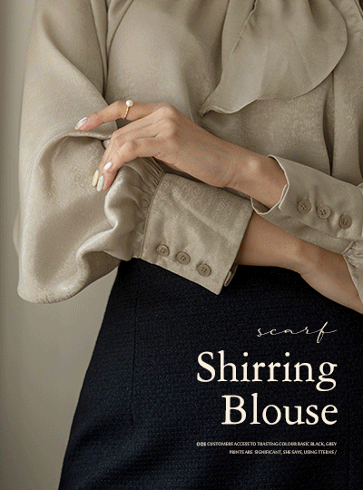 闪亮 围巾领 褶皱 罩衫