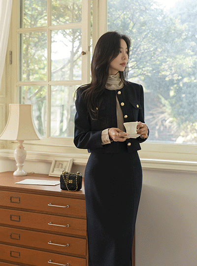 粗呢 光闪闪的线 黄金 扣子 Set-up 夹克