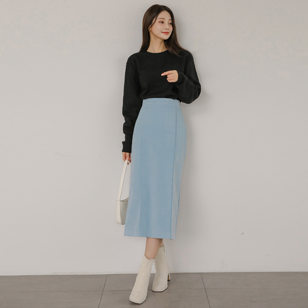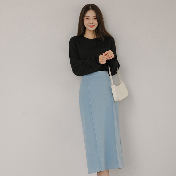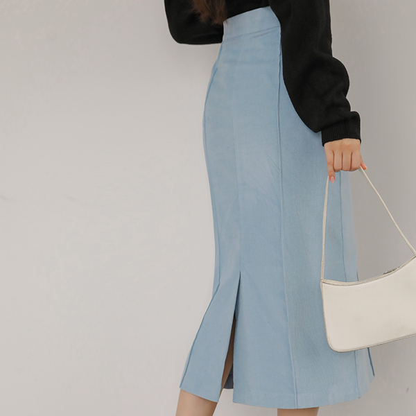 柔软的 灯芯绒 高腰 H字型 长款 裙子