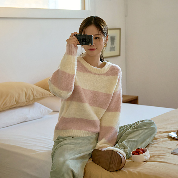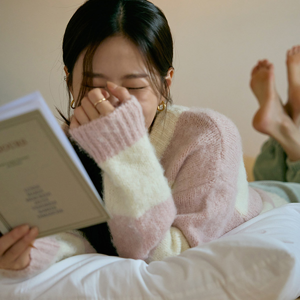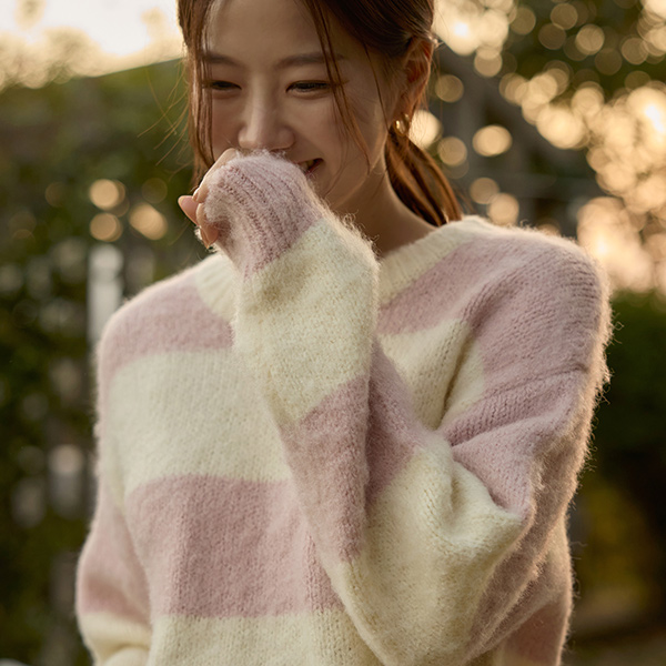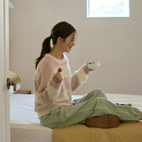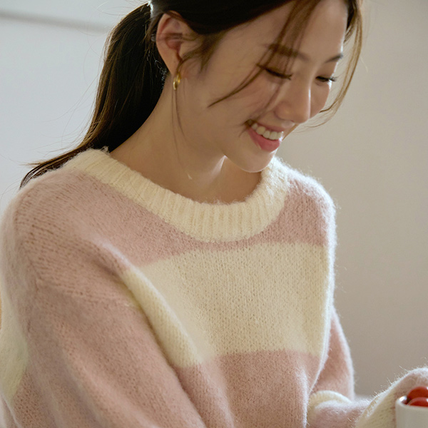 棉花糖 横条纹 柔软 羊毛 针织衫