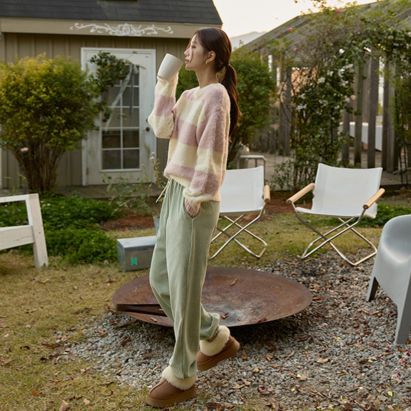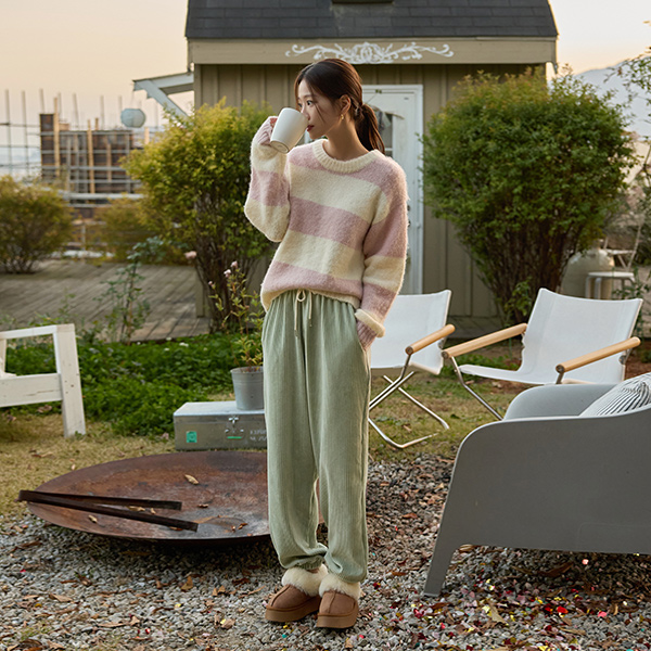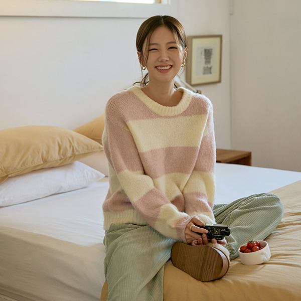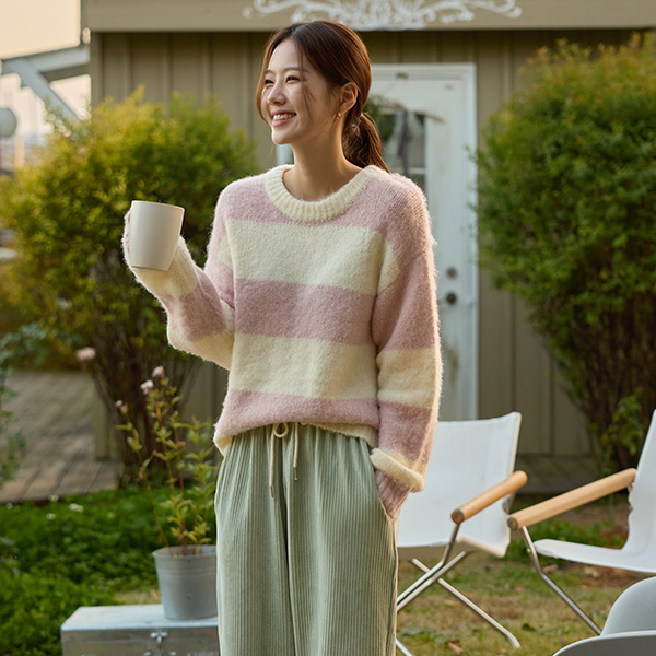 棉花糖 横条纹 柔软 羊毛 针织衫