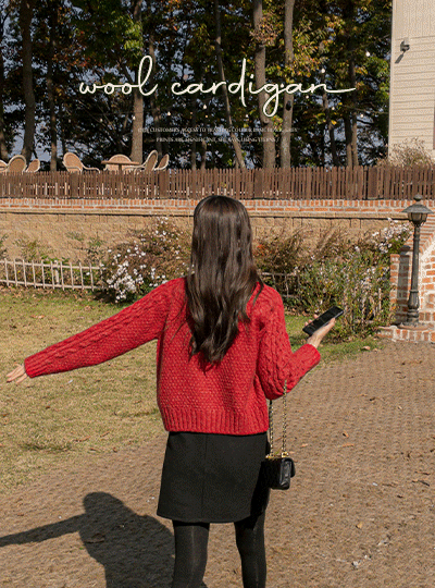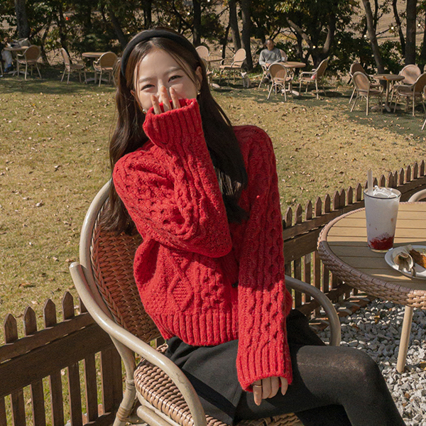 可爱 缆绳 编织的 扣子 点缀 羊毛 开衫
