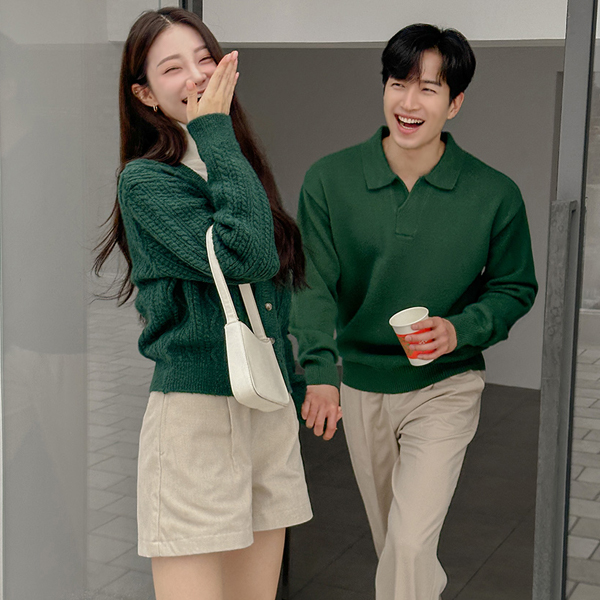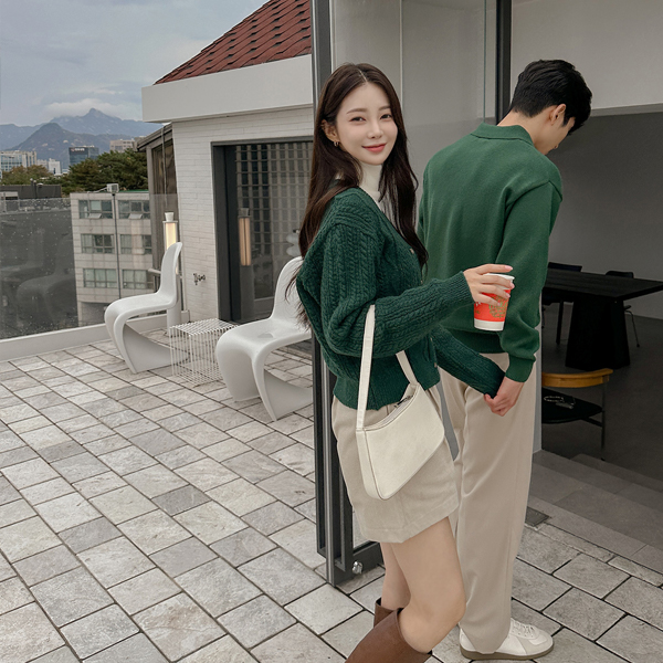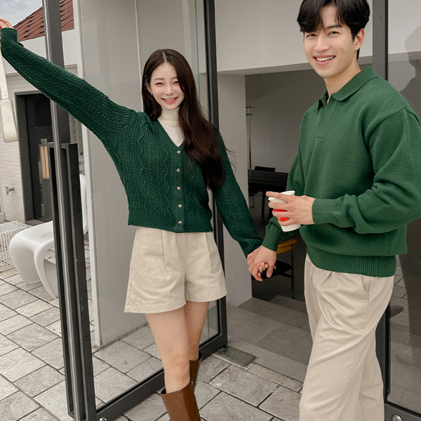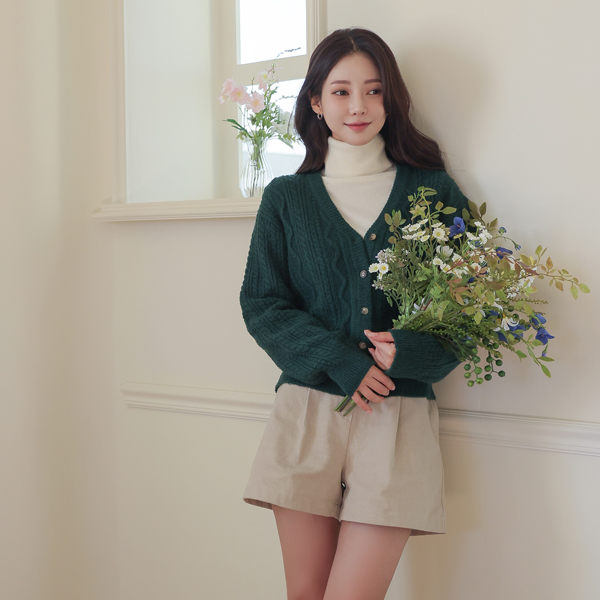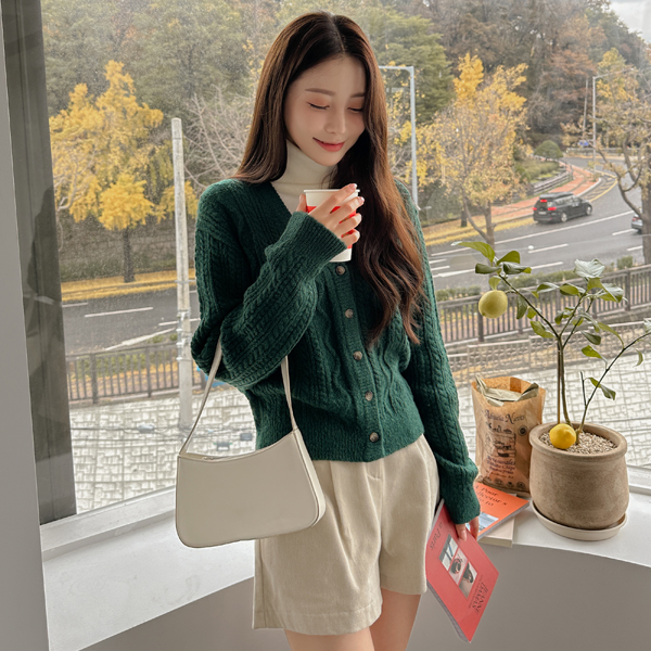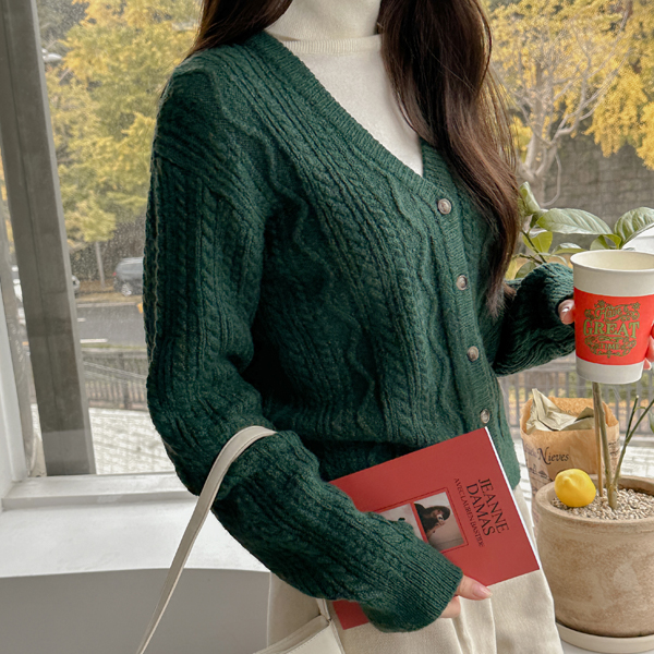 深颜色 V字领 缆绳 针织衫 开衫