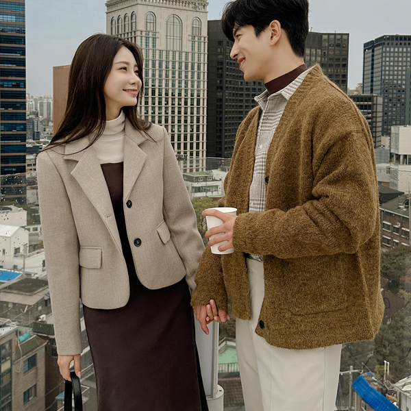 简单 基本 两扣 羊毛 夹克
