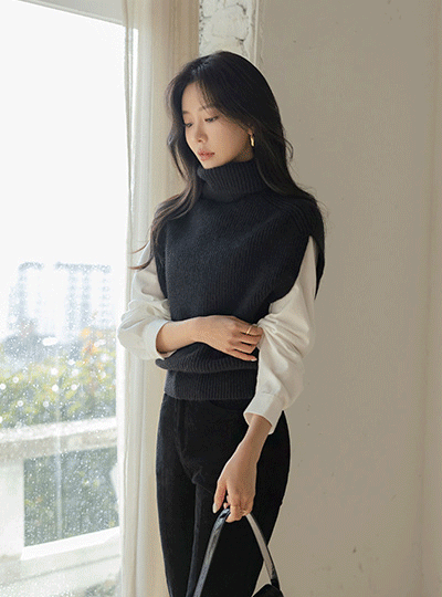 分层 高领 针织衫