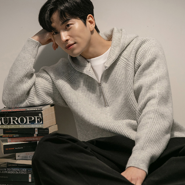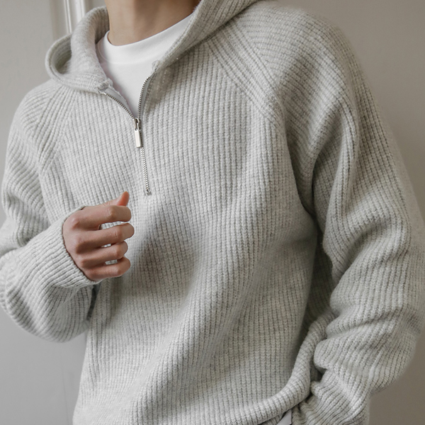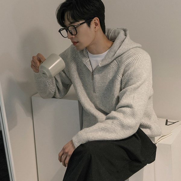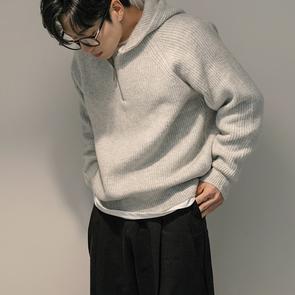 [HOMME] 开士米 插肩 短上衣 拉链卫衣 条绒 带帽 针织衫