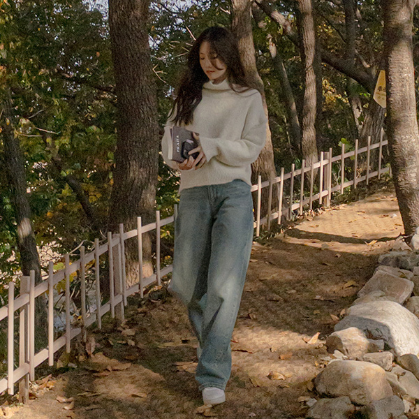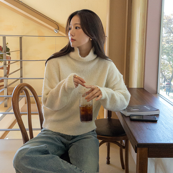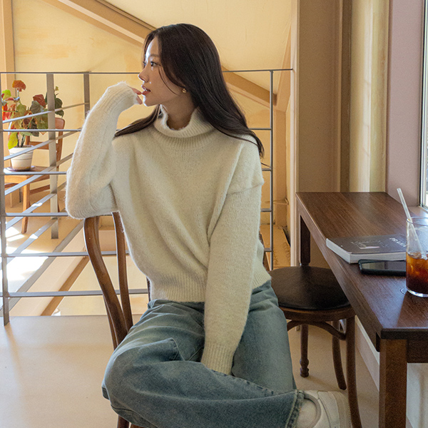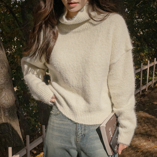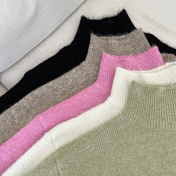 深 柔软的 羊毛 高领 针织衫