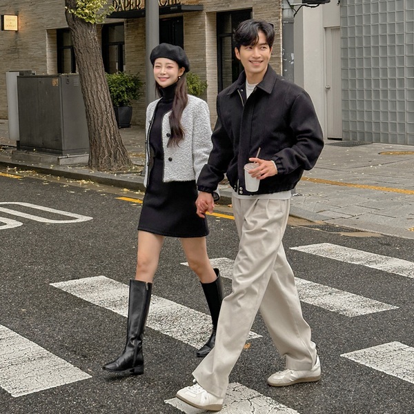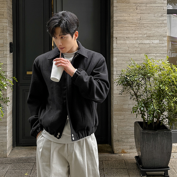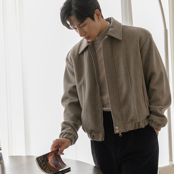 [HOMME] 稍厚的 单个 领子 开叉 束腰夹克 夹克 (绗缝里料)