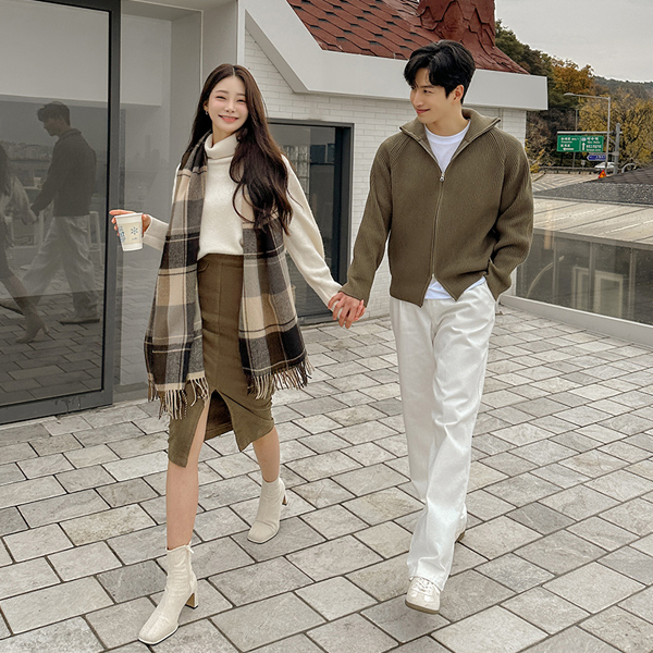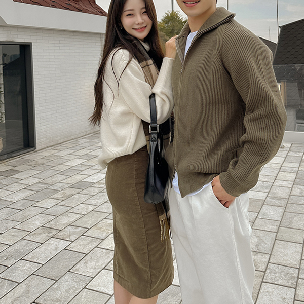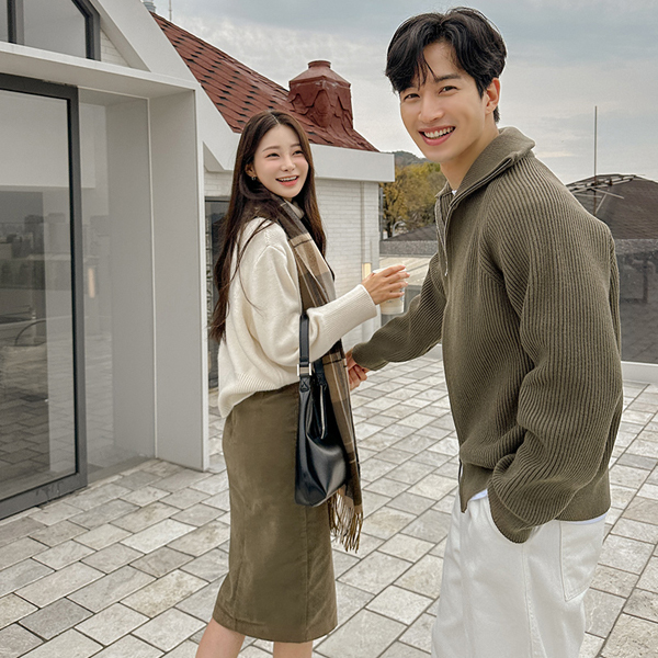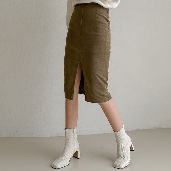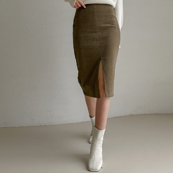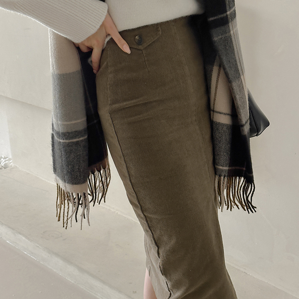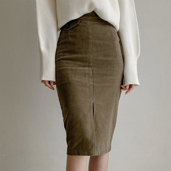 灯芯绒 口袋 点缀 前面 开衩 裙子