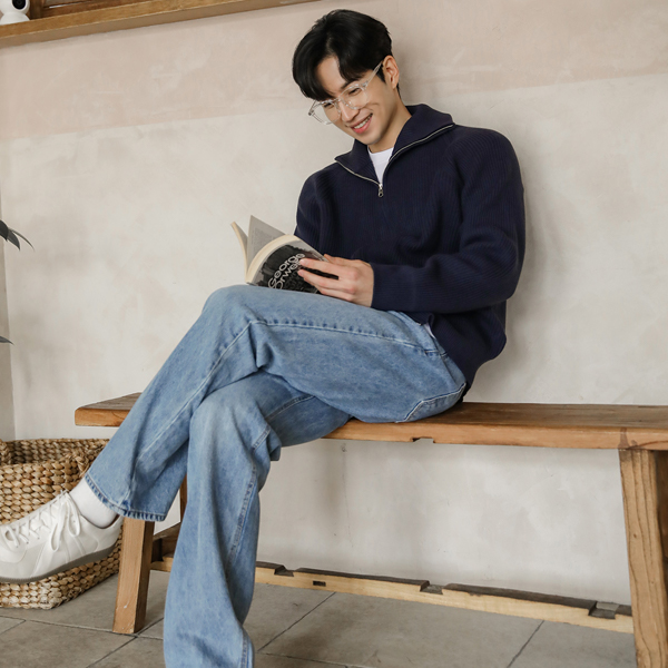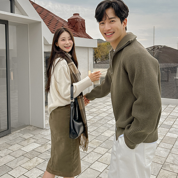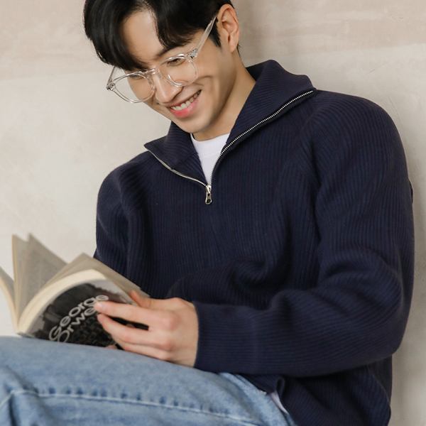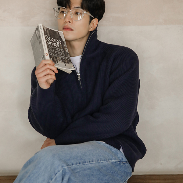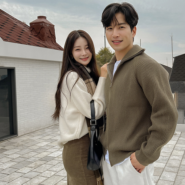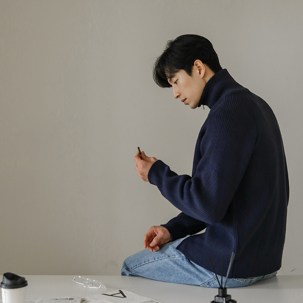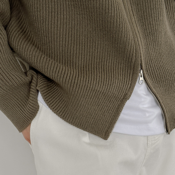 [HOMME] 高龄 插肩 双重 拉链 针织衫 条绒 羊毛 开衫