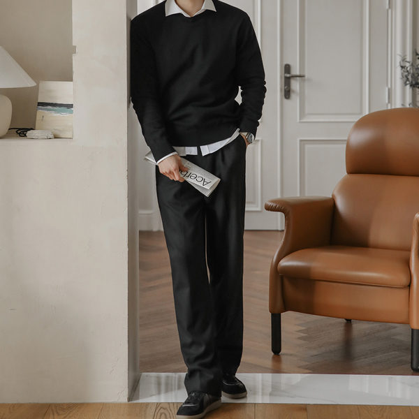[HOMME] 日常 开士米 粘胶 圆领 特征 针织衫