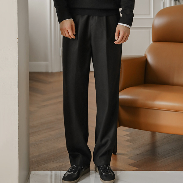 [HOMME] 冬季 拉绒 后腰松紧带 细褶 宽松 宽松长裤