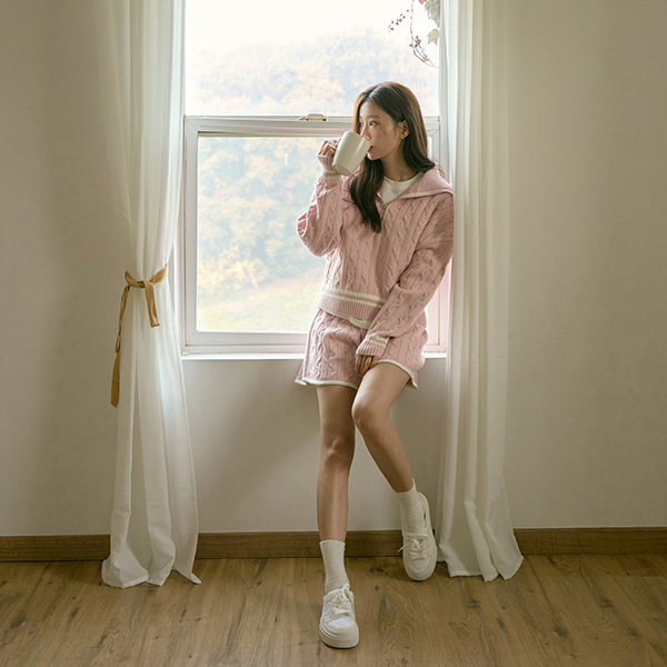 舒服 水手 领子 拉链卫衣&针织衫 裤子 (套装)