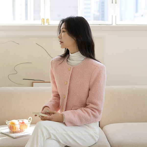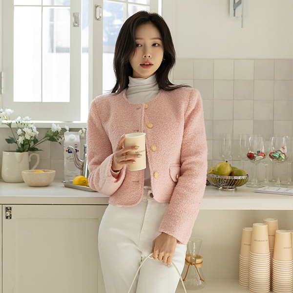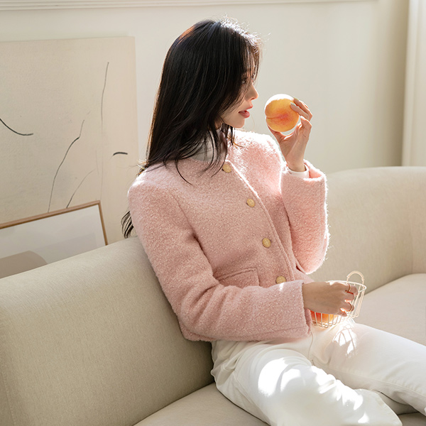 可爱 结子花式 毛巾 圆领 羊毛 夹克