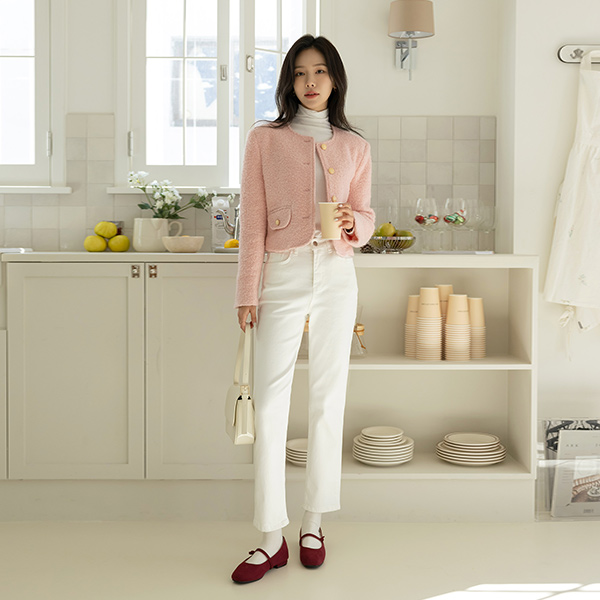 可爱 结子花式 毛巾 圆领 羊毛 夹克