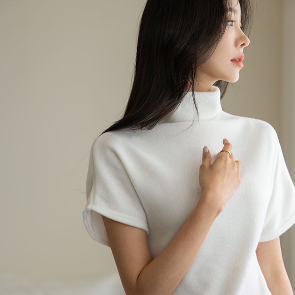 浪漫 颜色 桃皮拉绒 插肩 高领 T恤衫