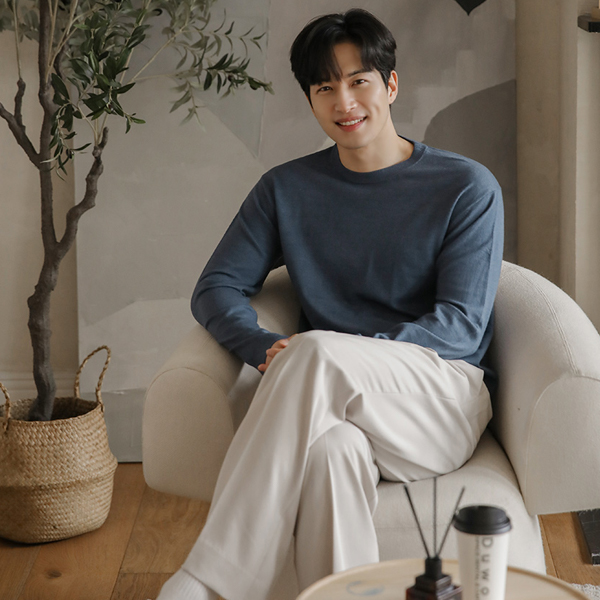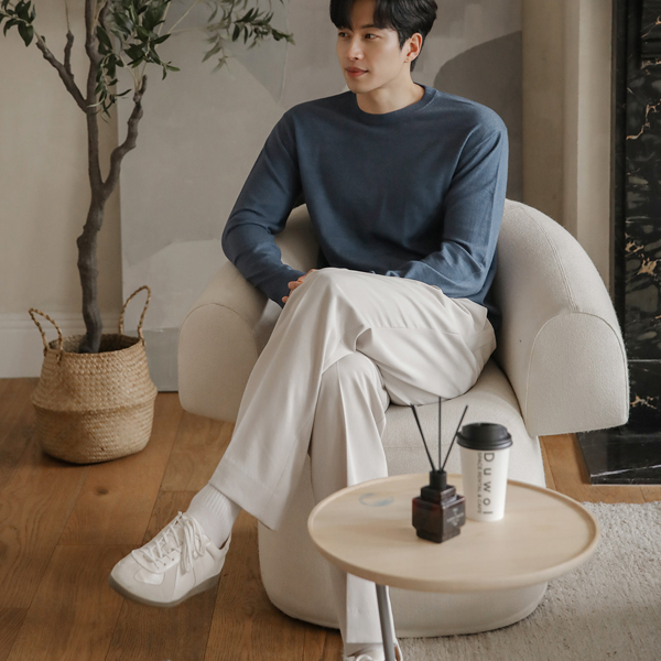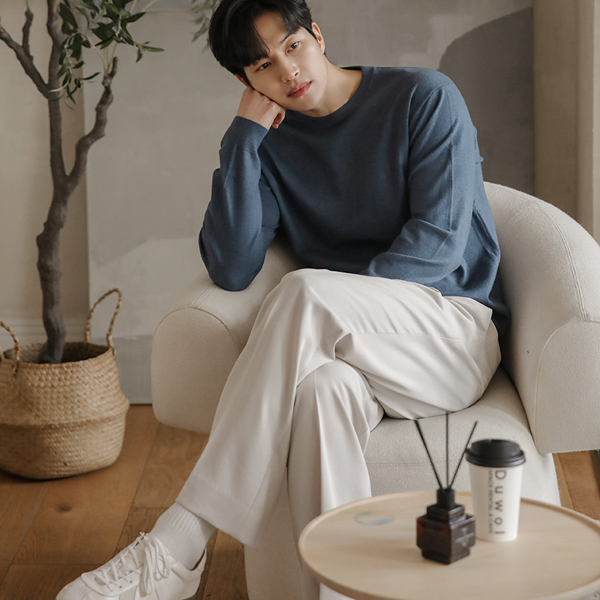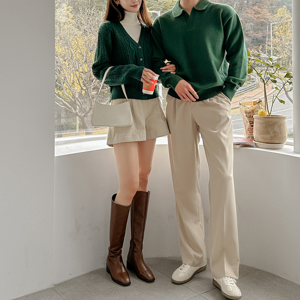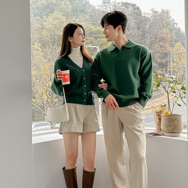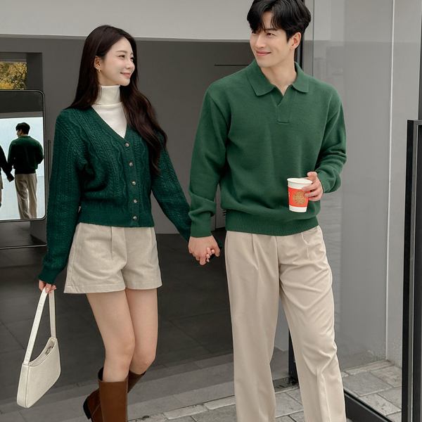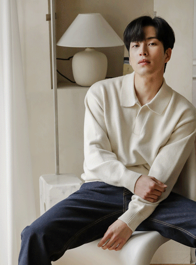 [HOMME] 稍厚的 简单 莫代尔 敞开式 领子 针织衫