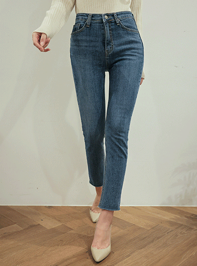 日常 隐藏 松紧带 底端 裁剪 斯利姆 一字型 牛仔色 裤子