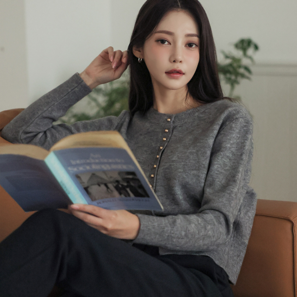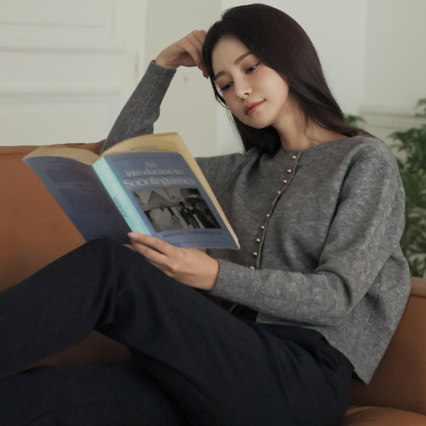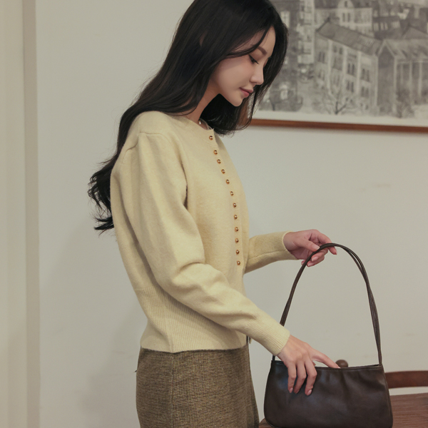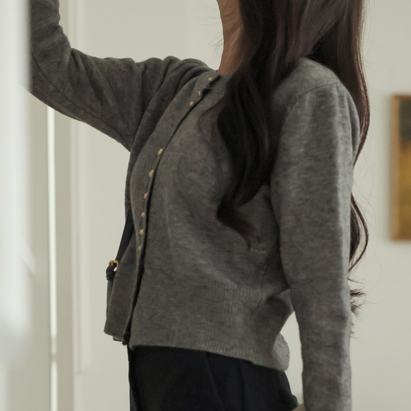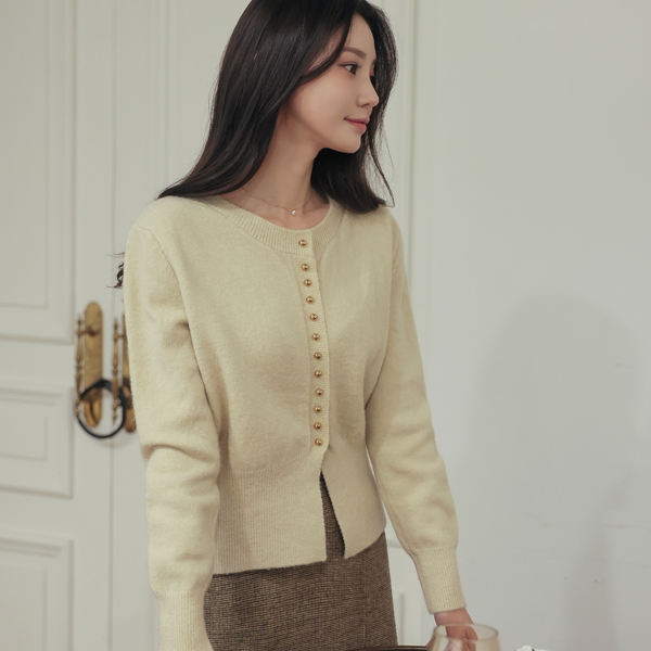 迷你 金色球 扣子 底端 开衩 针织衫 开衫