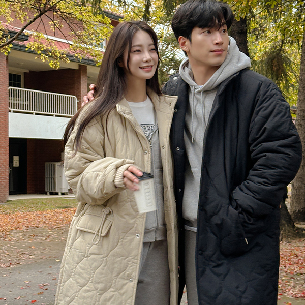 [HOMME] 绗缝 插肩 户外夹克 羽绒服 抽绳 长款 大衣