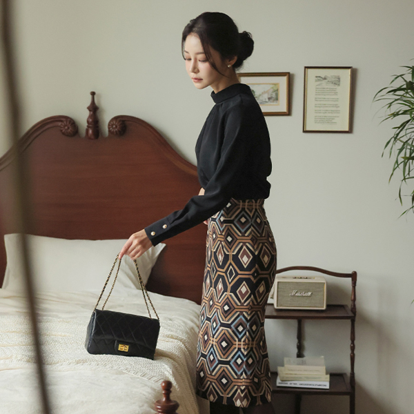 皱裥打褶 高翻领 珍珠扣 袖口 罩衫 Ⅱ
