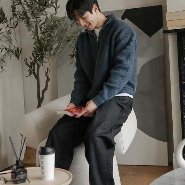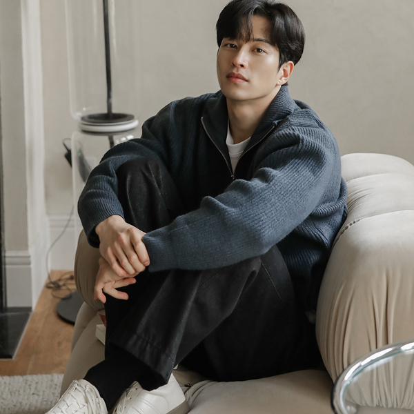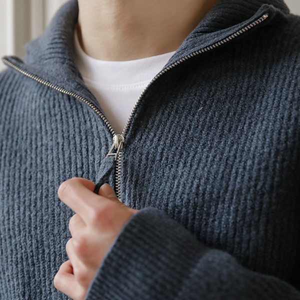 [HOMME] 稍厚的 翻盖式 短上衣 拉链卫衣 条绒 针织衫