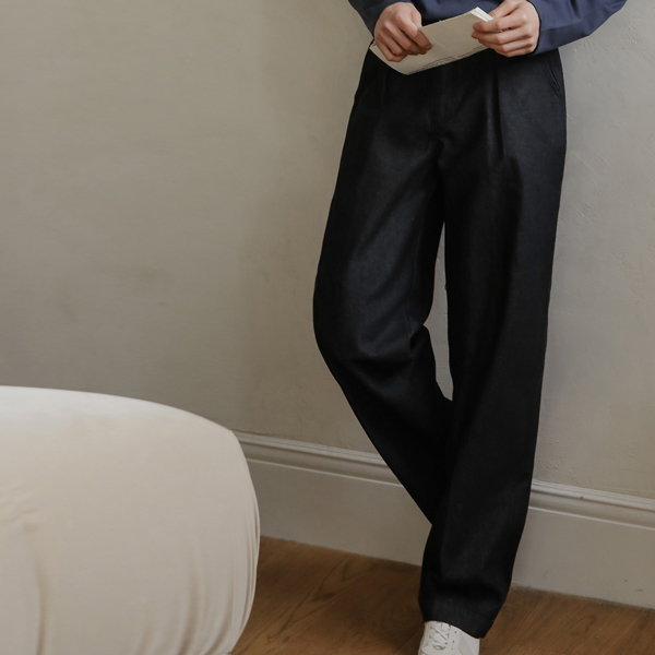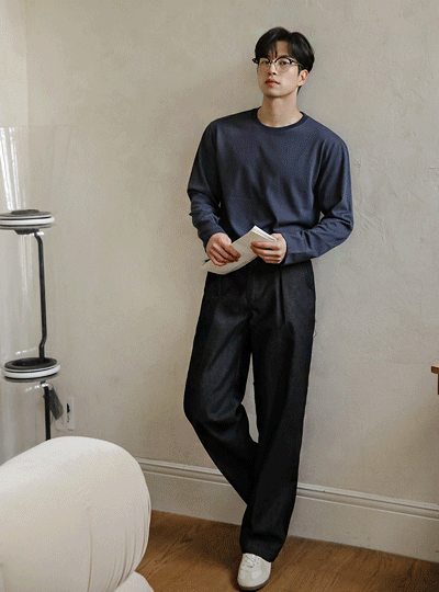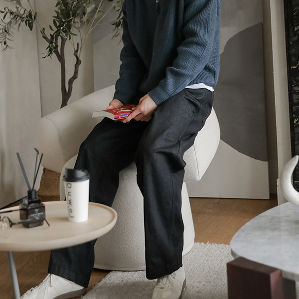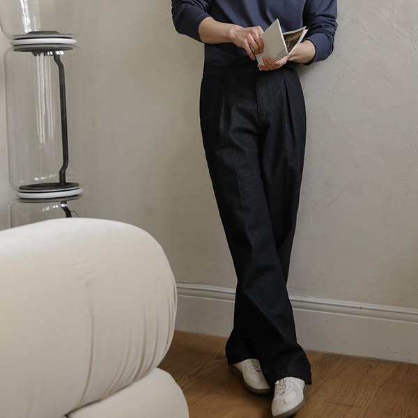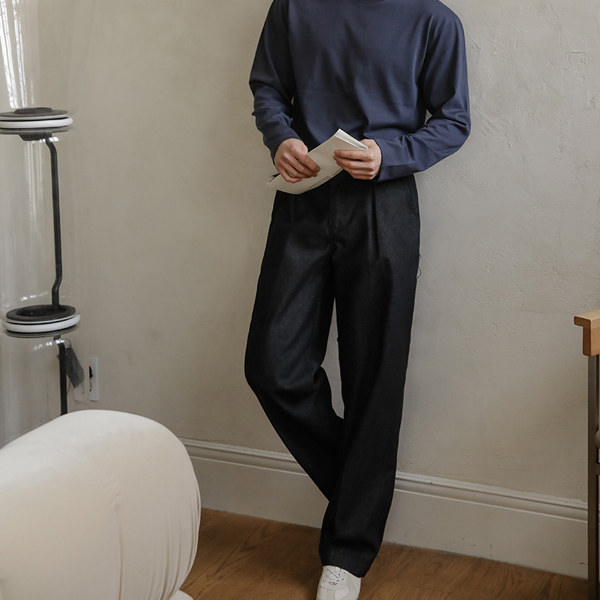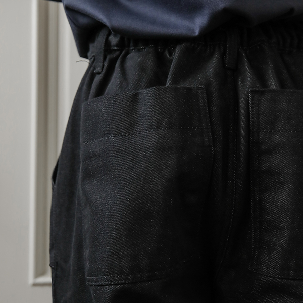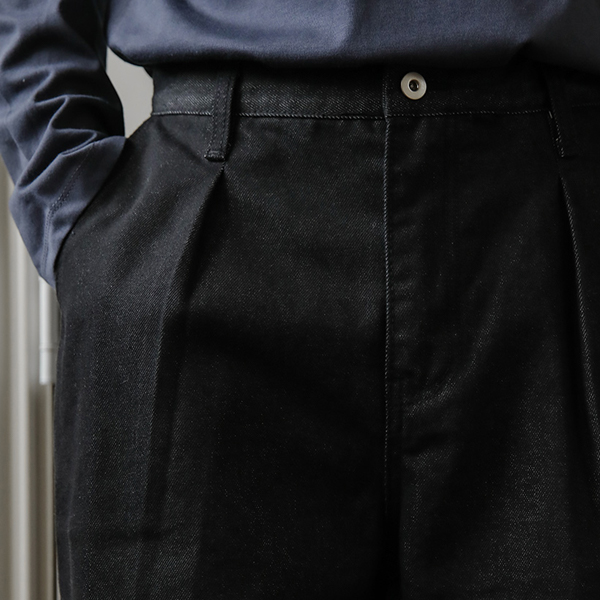 [HOMME] 细褶 后腰松紧带 宽松 牛仔色 裤子