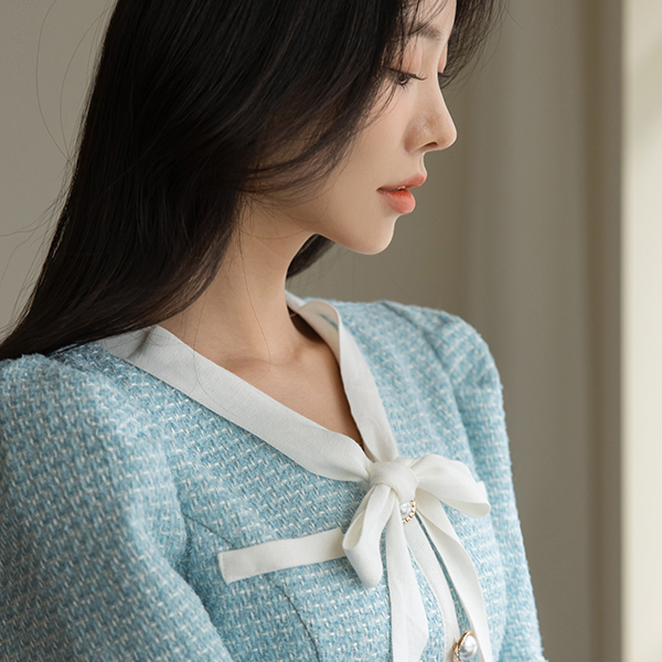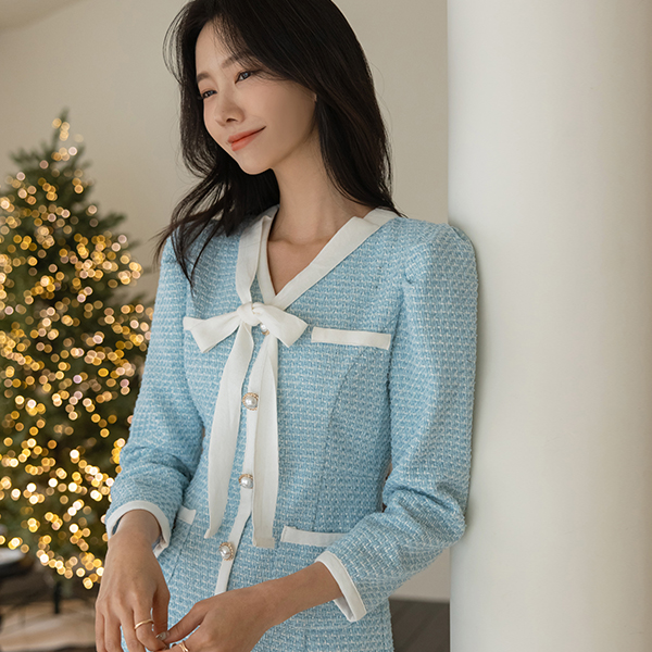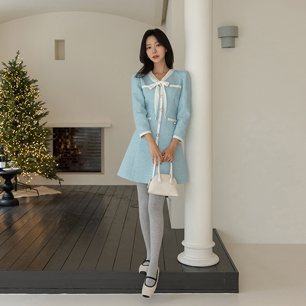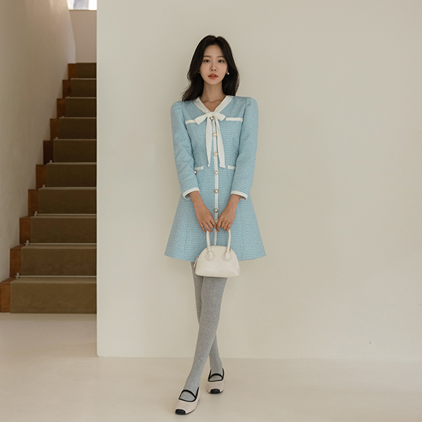 浪漫 蝴蝶结 领带 A字型 粗呢 迷你 连衣裙