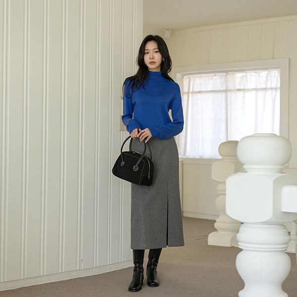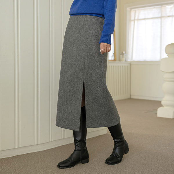 炫酷 情调 开衩 点缀 羊毛 裙子