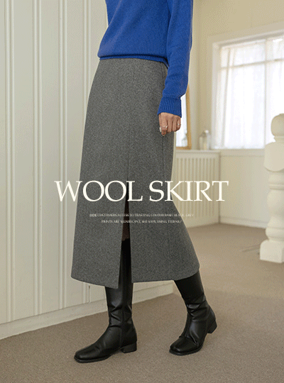 炫酷 情调 开衩 点缀 羊毛 裙子