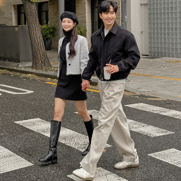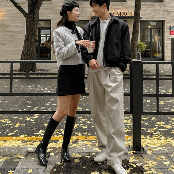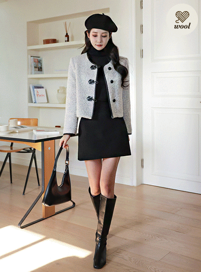 结子花式 羊毛 圆领 牛角扣 扣子 夹克 (绗缝里料)