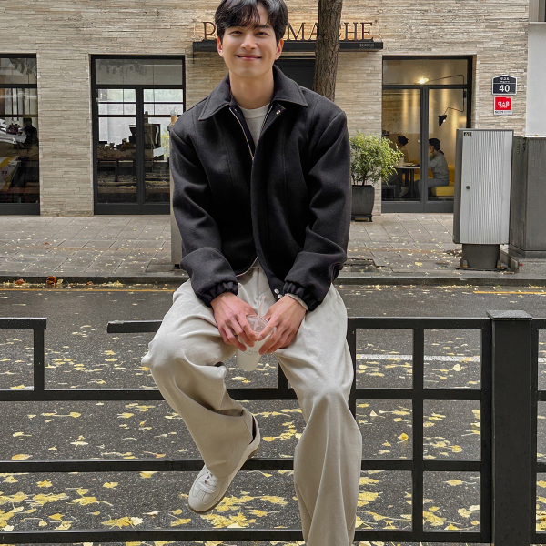 [HOMME] 稍厚的 单个 领子 开叉 束腰夹克 夹克 (绗缝里料)