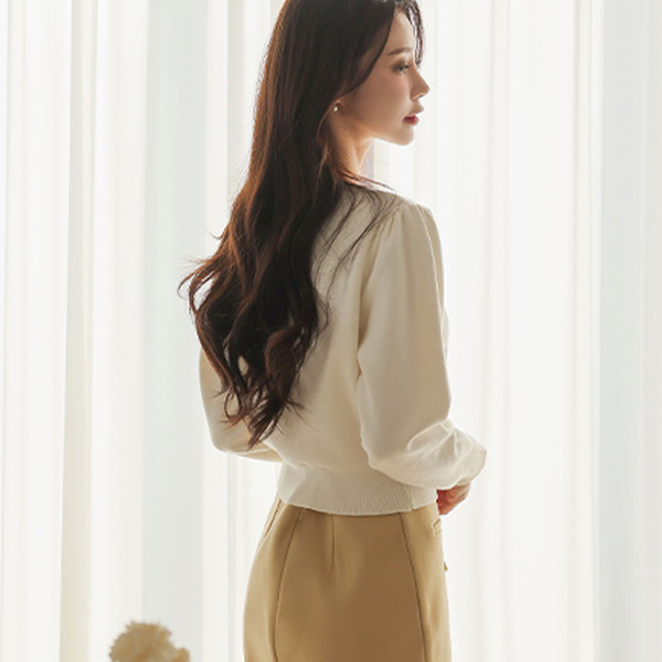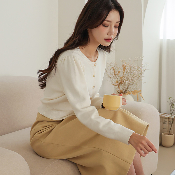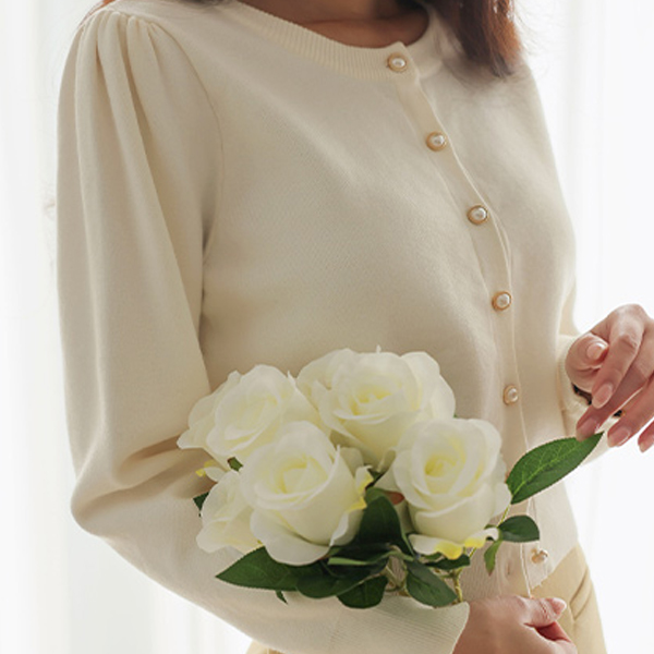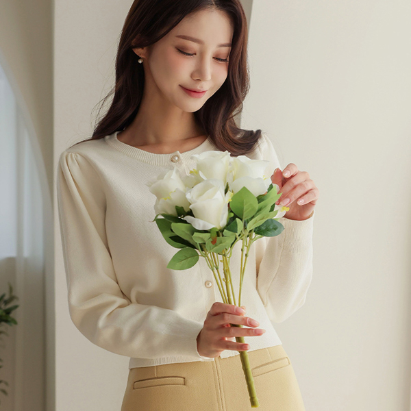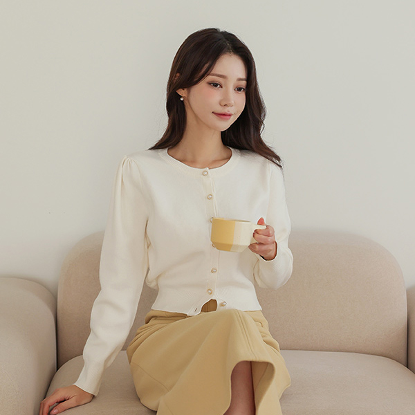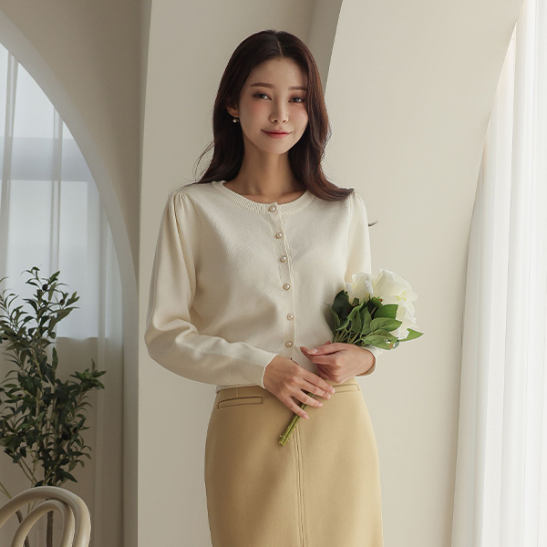 温和 珍珠 扣子 圆领 开衫
