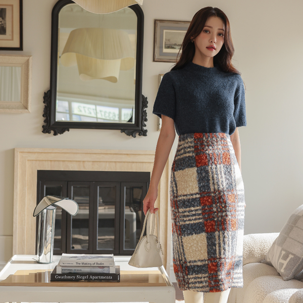 柔软的 结子花式 织物 格子 H字型 裙子