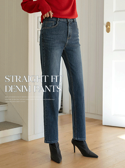 弹性好的 一字型 衬里加绒 牛仔色 裤子
