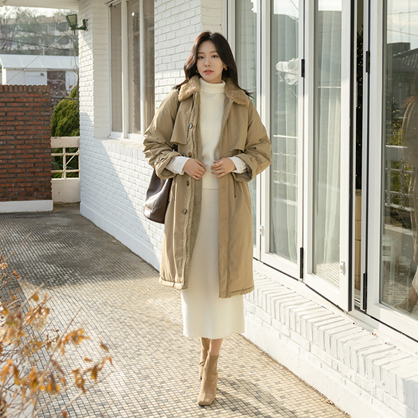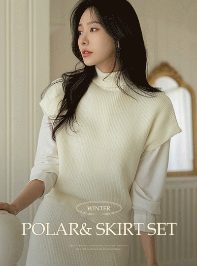 舒服 风格 针织衫 高领&裙子 (套装)