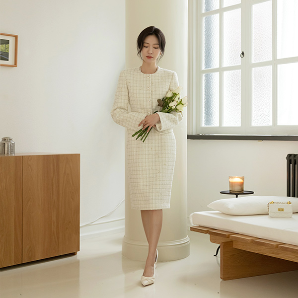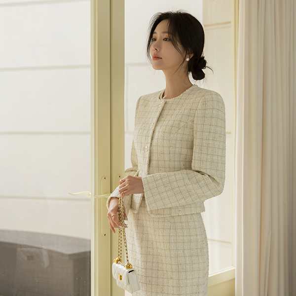 必要 珍珠 粗呢 Set-up 裙子