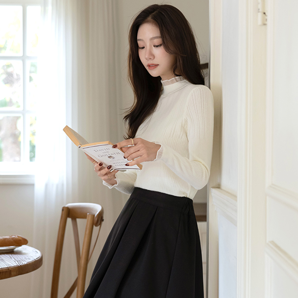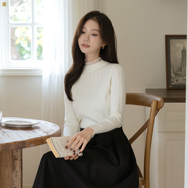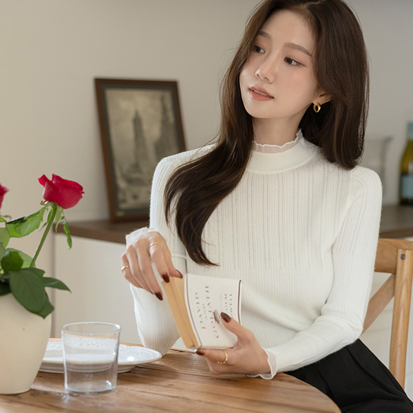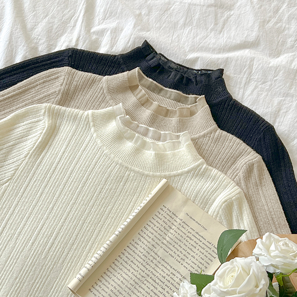 浪漫 雪纺 分层 高翻领 粘胶 条绒 针织衫