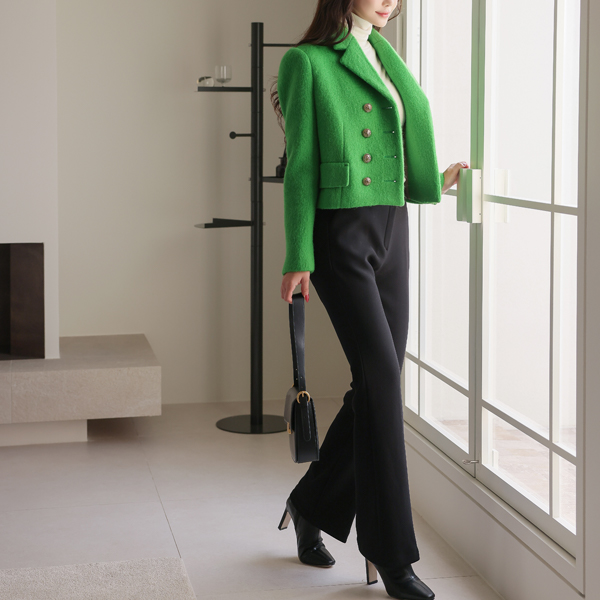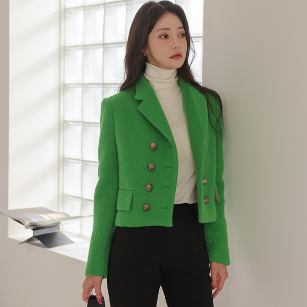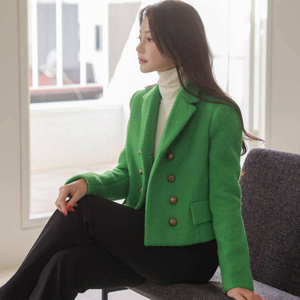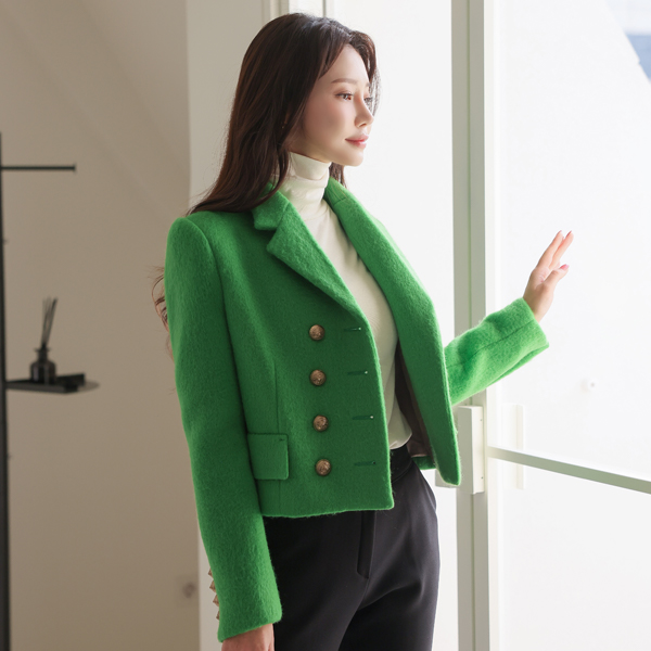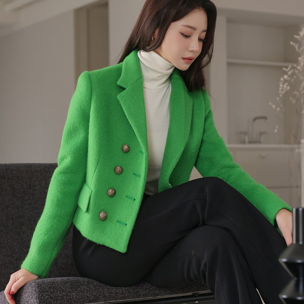 霓虹 颜色 黄金 双 扣子 羊毛 夹克