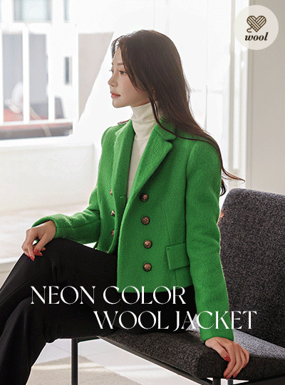 霓虹 颜色 黄金 双 扣子 羊毛 夹克