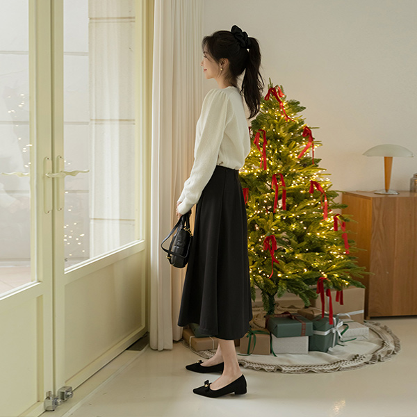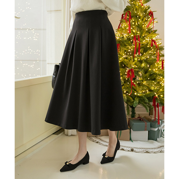ODE 细褶 褶边 A字型 后侧松紧带 裙子 (winter)