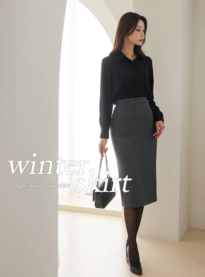 冬季 束带 高腰 H字型 裙子 (衬里加绒)