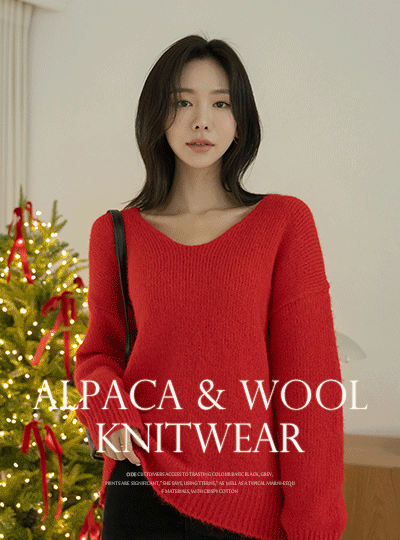 苗条 V字领 羊驼毛&羊毛 色彩点缀 针织衫
