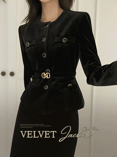 黄金 扣子 丝绒 修身 夹克 (腰带SET)